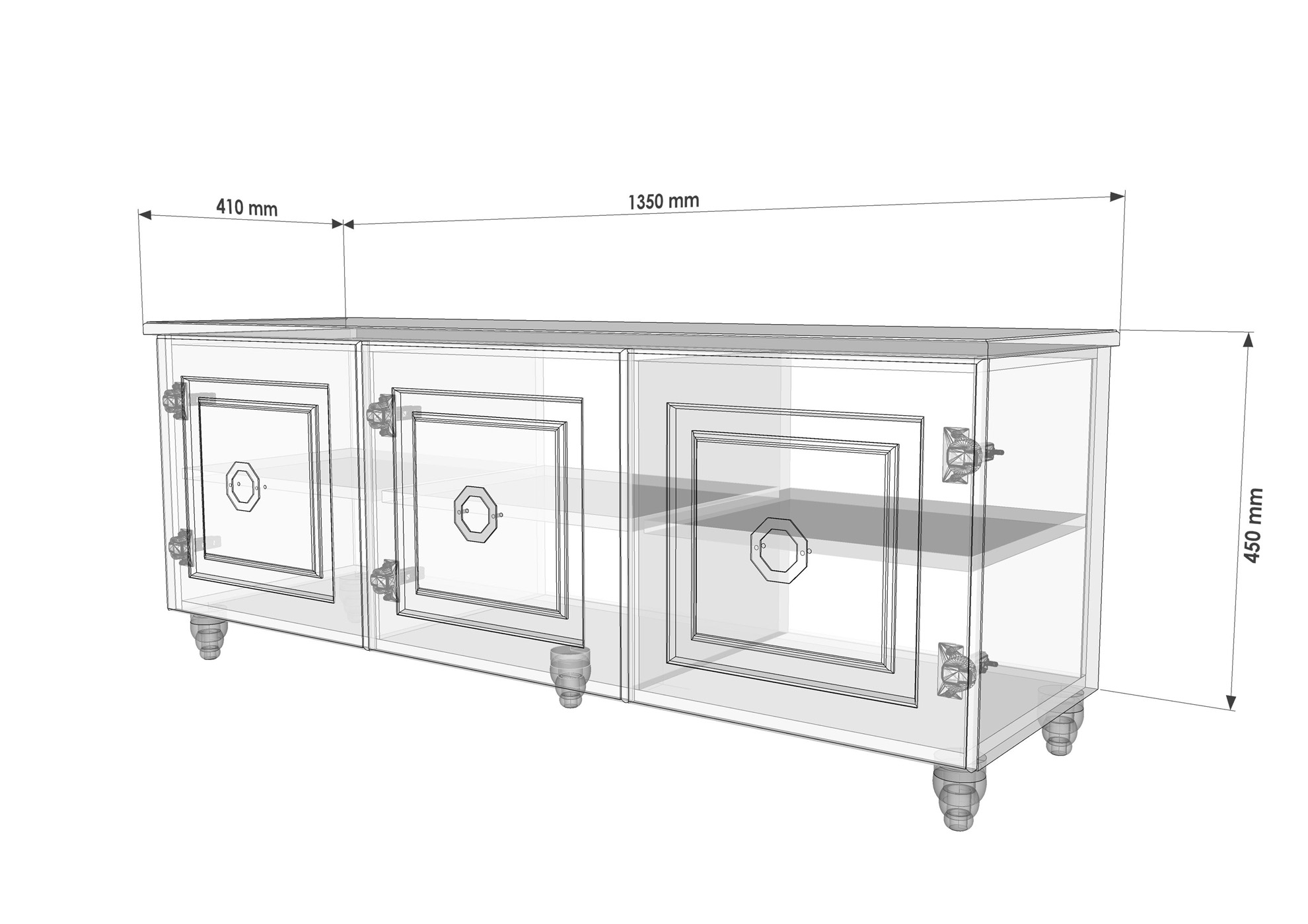 Тумба под телевизор Лозанна имеет четыре просторных ящика для хранения всех необходимых вещей, от приставки до телевизора до дисков с фильмами и играми. Она украшена изящными резными элементами и декоративными ручками, что добавляет шарма и элегантности вашему интерьеру.