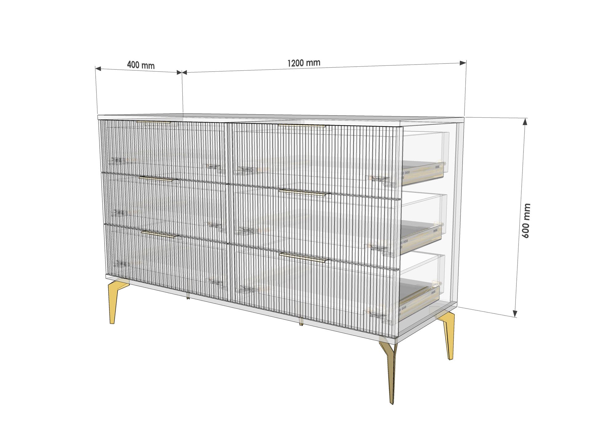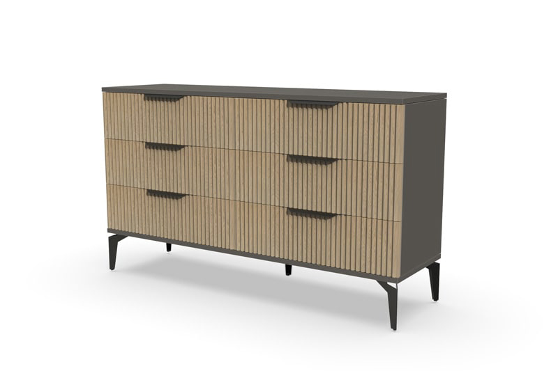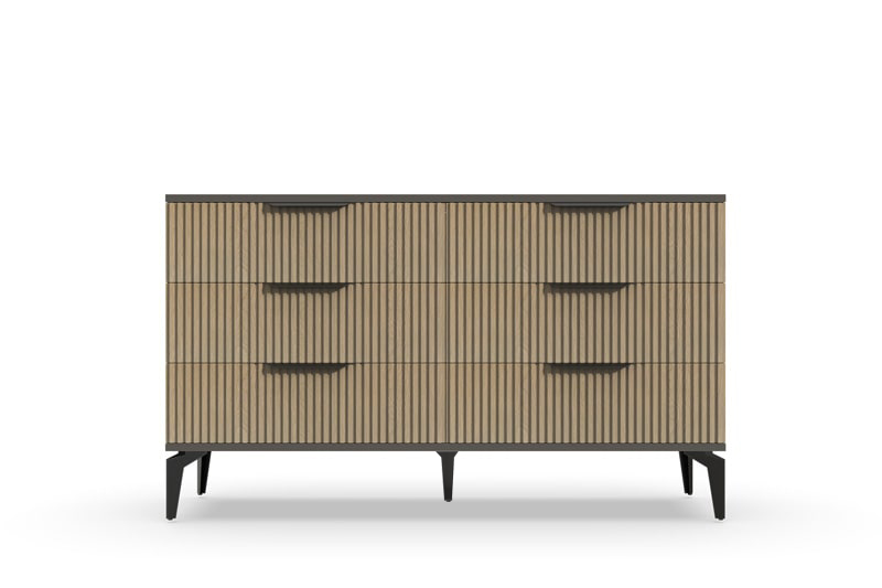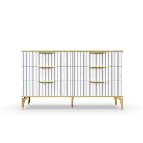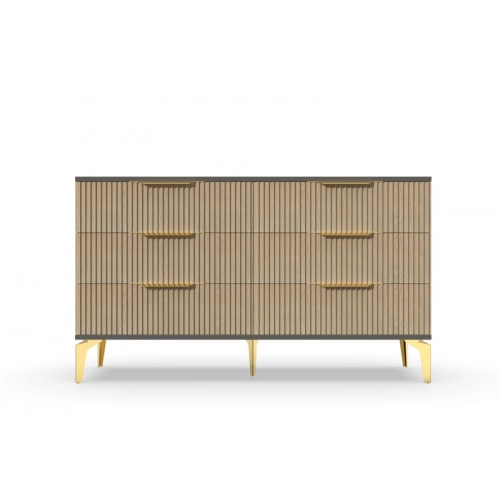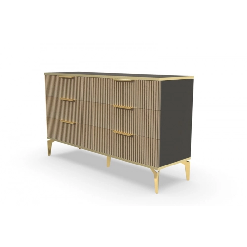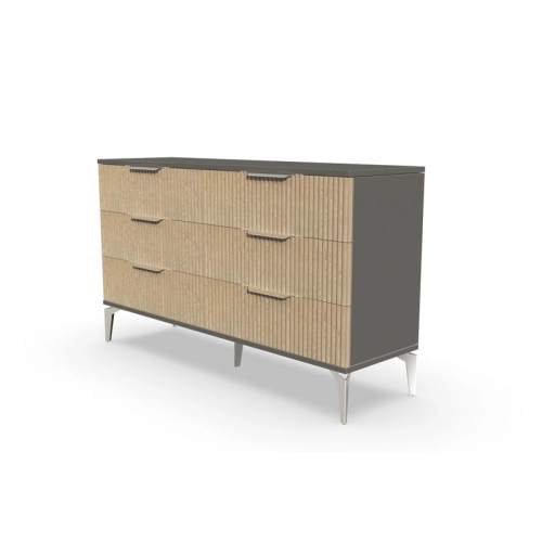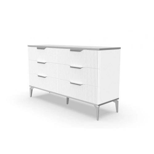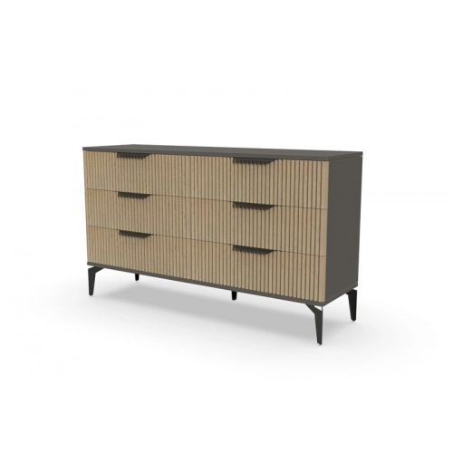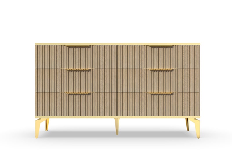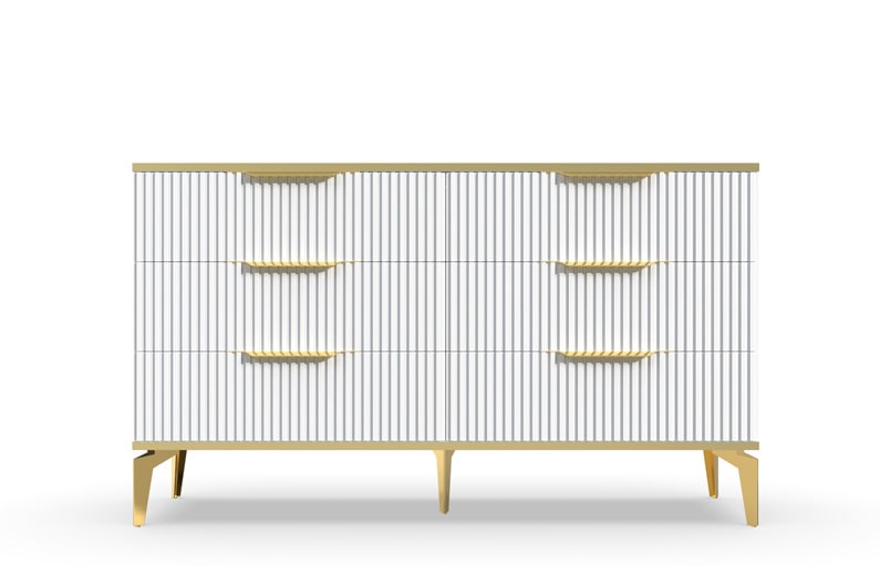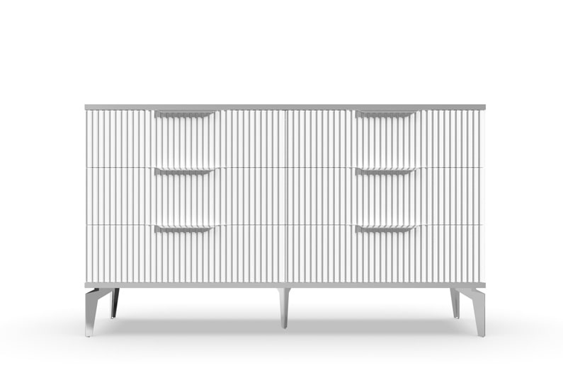 В итоге, комод "Рейн" от фабрики Geona - это стильное и функциональное решение для хранения вещей в вашей гостиной или спальне. Его рифлёные поверхности придают ему уникальный и современный вид. Комод изготовлен из высококачественных материалов и производится с применением передовых технологий, что гарантирует его долговечность и надежность.