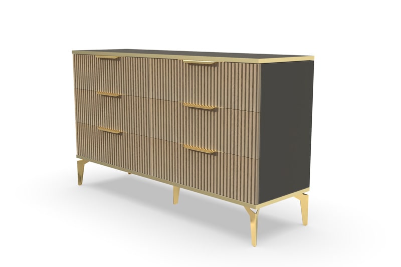 Одной из ключевых особенностей комода "Рейн" являются его рифлёные поверхности, которые придают ему современный и уникальный вид. Техника рифлёных поверхностей в декорировании мебели - это относительно новый тренд в дизайне интерьеров, который позволяет создавать необычные и уникальные вещи.