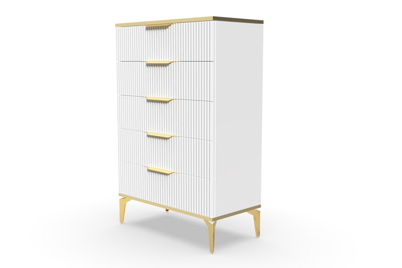 В итоге, комод высокий "Рейн" от фабрики Geona - это функциональное и элегантное решение для вашей спальни или гостиной. Он имеет несколько выдвижных ящиков разного размера, а его рифлёные поверхности придают ему современный и стильный вид. Комод выполнен из качественных материалов и производится с применением передовых технологий, что гарантирует его долговечность и надежность.