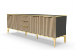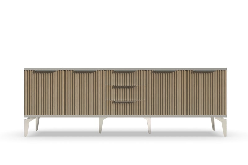 Тумба под телевизор длинная "Рейн" от фабрики Geona - это современное и практичное решение для вашей гостиной или гостевой комнаты. Она имеет несколько выдвижных ящиков и открытые полки для хранения различных предметов, включая телевизионную технику и аксессуары.
