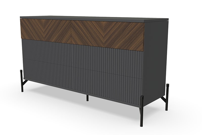 Отделка комода "Шале" в диагональном направлении текстуры создает эффект глубины и динамики. Эта техника декорирования мебели делает его уникальным и привлекательным, а также позволяет гармонично вписаться в разные стили интерьера. Комод "Шале" будет идеально смотреться в спальне или гостиной, добавляя в них изысканность и элегантность.